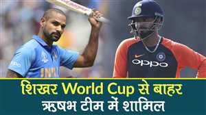 चोटिल शिखर धवन World Cup से बाहर, ऋषभ को टीम इंडिया में मिली जगह