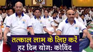 राष्ट्रपति कोविंद ने योग कर कहा, "जल्द लाभ के लिए नित्य योग करें"